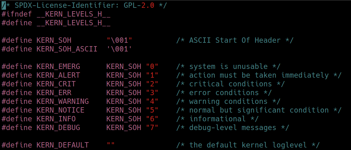 在 include/linux/kern_levels.h 中可以看到這些 log level 的定義
